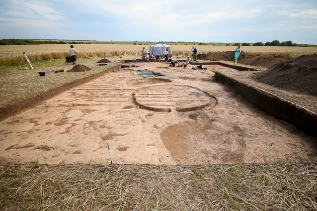 Археологический участок близ Гнездилова расположен прямо посреди пшеничных полей. Бескрайнее небо сходится на горизонте с полями светло-янтарного цвета, а где-то поблизости змейкой течет река Каменка. Как же прекрасно наше Суздальское Ополье!