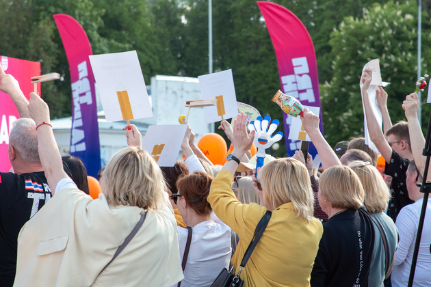 Ведущим шоу выступил известный пародист и музыкант Кирилл Нечаев, который всячески подбадривал команды и группы поддержки. Ведь по условиям конкурса главный критерий успеха выступления - громкость аплодисментов и возгласов среди зрителей. С помощью шумомера определялись уровни децибелов. Это своеобразная игра на выбывание. Приз для команды-победителя - 100 тысяч рублей на корпоратив и звание самого поющего офиса Владимира.