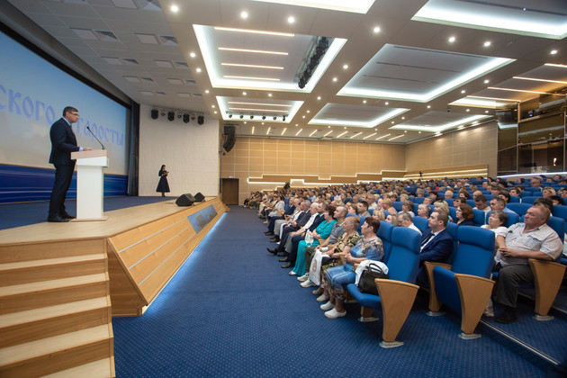 На праздничном собрании губернатор вручил лучшим из главных героев дня памятные знаки «Сельскому старосте. За добросовестный труд». Это знаки признания за активную общественную работу, большой личный вклад в решение социальных вопросов жителей сельских населённых пунктов. Еще целая группа старост награждена памятными часами от губернатора.