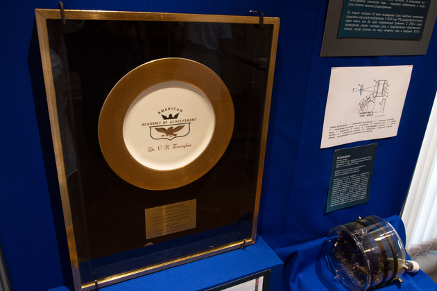 Экспонаты, связанные с изобретениями Зворыкина, находятся в Музее телевизионного искусства, а также Санкт-Петербургском государственном технологическом институте. Муромский историко-художественный музей с конца 1980-х начал собирать фонд имени Владимира Зворыкина, буквально в последние годы приобрел важные экспонаты, на которые можно посмотреть в рамках тематической выставки. В витрине гости музея смогут увидеть модернизированную Владимиром Зворыкиным в 1945 году модель иконоскопа. Еще один экспонат – золотая тарелка, которую получил Зворыкин в 1967 году за свои достижения от Американской академии достижений. В США он уехал в 1919 году.