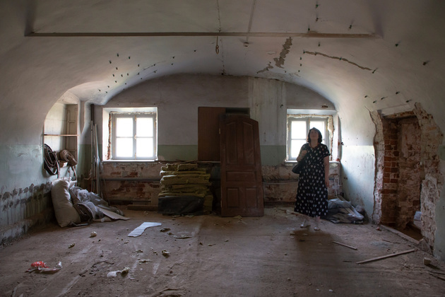 – Пока не идет речь о внутренней отделке. Подрядчик занимался тем, что восстанавливал сплошность стен, на фасаде есть трещины, – комментирует Анна Горская. – Скоро будет заключен еще один контракт на укрепление стен, замену деревянных сгнивших перемычек, восстановление кирпичной кладки. Когда будем уверены в том, что конструкция самого здания может выдержать дальнейшие нагрузки, приступим к внутренней отделке и строительству экспозиции.