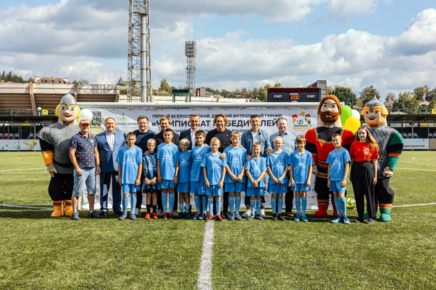 На поле вышли команды детей участников спецоперации, воспитанники социально-реабилитационных центров, дети, оставшиеся без попечения родителей, подопечные соцучреждений и др.