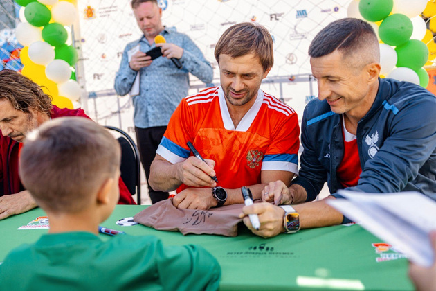 Во Владимир приехали легендарные футболисты - двукратный чемпион России Евгений Алдонин, бронзовый призёр чемпионата Европы Дмитрий Сычёв, экс-участники сборной страны Александр Мостовой и Руслан Пименов.