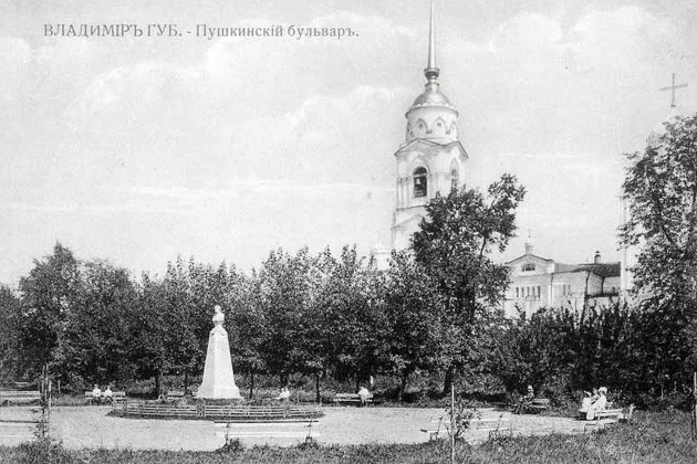Добавим, что памятник Александру Сергеевичу Пушкину - небольшой поясной бюст поэта на высоком деревянном постаменте - впервые был установлен во Владимире к 100-летию великого поэта, в 1899 году. Тогда же было открыто училище имени Пушкина.