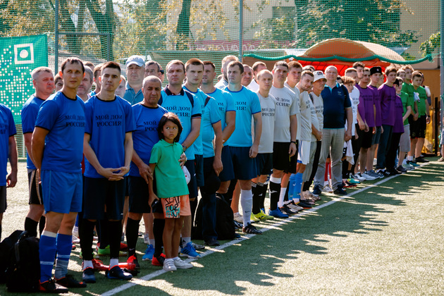 И вот мы на открытии финальных соревнований спартакиады. На футбольном поле ДЮЦ «Молодежный» в Центральном парке Владимира построились команды из Вязниковского, Гусь-Хрустального, Киржачского, Ковровского и Кольчугинского районов, города Гусь-Хрустального и две из Владимира - «Месопотамия» и «Каспий». Каждая команда в футболках своего цвета с надписью «Мой дом - Россия» и «Мы вместе!»