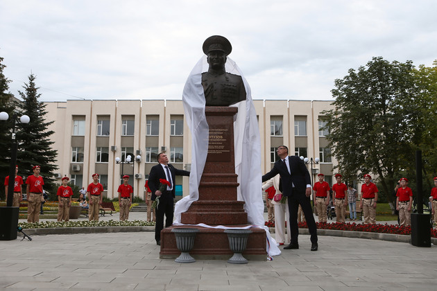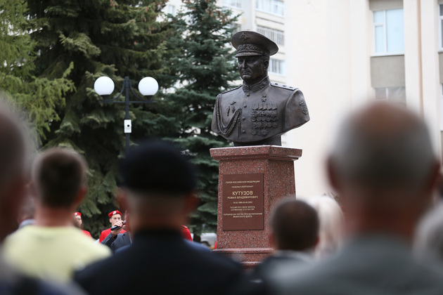 Почетное право открыть памятный бюст генерал-лейтенанту Роману Кутузову было предоставлено губернатору Александру Авдееву, главе города Владимира Дмитрию Наумову и супруге героя Олесе Анатольевне Кутузовой.