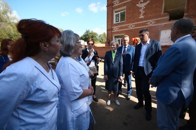Губернатор сперва убедился в том, что, пока идет реконструкция, амбулаторный прием не приостановлен, а организован в здании стационара, где недавно прошел капитальный ремонт.
