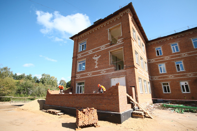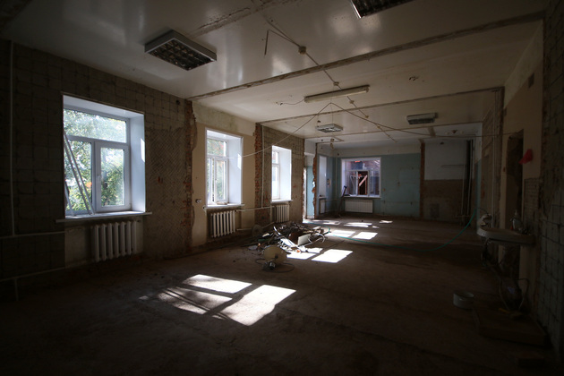 Кроме полной внутренней переделки помещений здание расширяют. К поликлинике пристраивают лестничные клетки, каменщики уже возводят стены. Появятся и лифт, и новое оборудование.