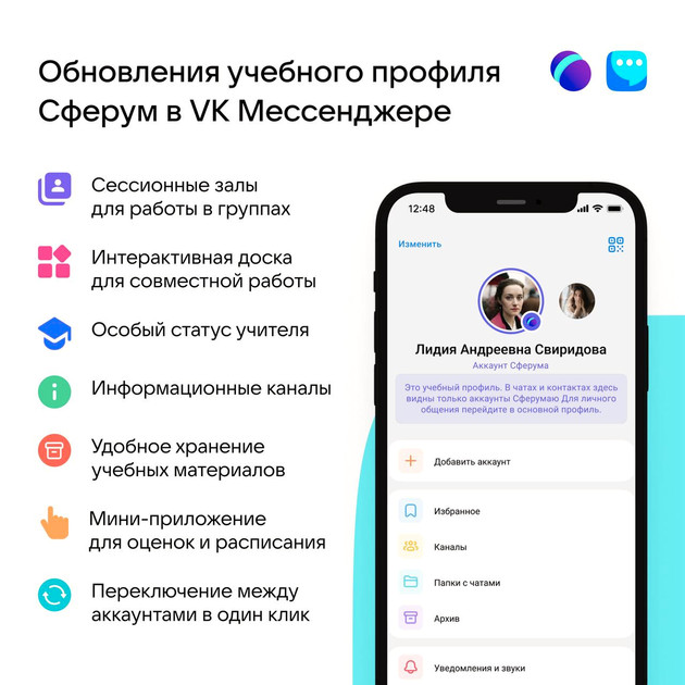 За счет мини-приложения «Электронный дневник» ученики теперь могут просматривать расписание и оценки со смартфонов и присоединяться к запланированным урокам. Переключиться между учебным и личным профилями в VK Мессенджере теперь это можно всего в один клик.