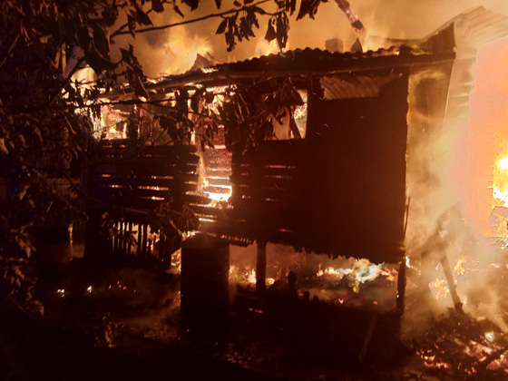 К моменту прибытия пожарных подразделений огонь прошел уже 130 кв. м. К сожалению, дом сгорел полностью.