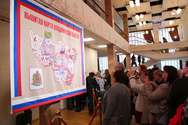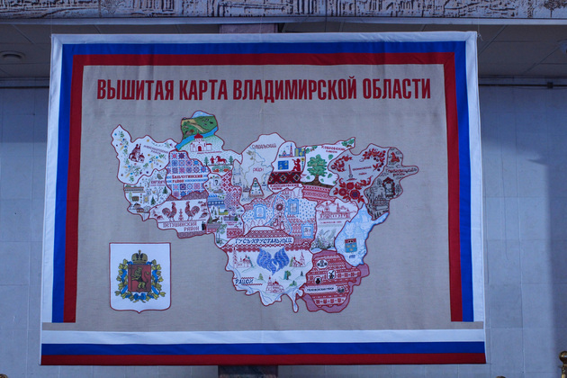 14 сентября во Владимире состоялась презентация проекта "Вышитая карта Владимирской области". Это полотно - труд мастеров со всех районов нашего края. Карта показывает многообразие и богатство Владимирской области, её традиции, ремесла и культурное наследие.