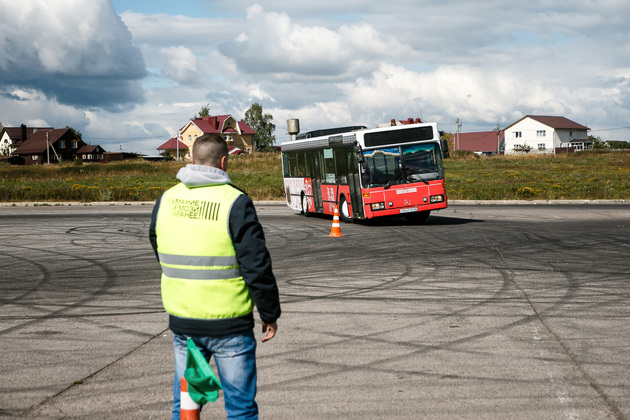 Перед началом состязаний мы пообщались с участниками. Валерий Поспелов уже 15 лет работает в сфере междугородных и пригородных перевозок, а общий стаж вождения у него - 30 лет. Удача всегда с ним в пути, ведь ДТП обошли его стороной.