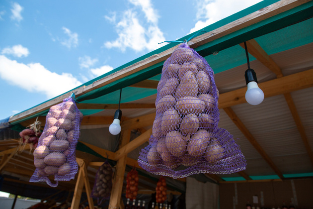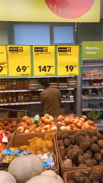 Картофель расфасован в полупрозрачных оранжевых и фиолетовых мешках из полимерного материала. Один мешок в среднем весит 30 килограммов, значит, его стоимость - около 900 рублей. Лук в более компактной упаковке, а морковь разложена в обычные пакеты-майки. К услугам покупателей - электронные весы. Взвесил овощи и сразу ясно, на какую сумму «потянула» покупка.