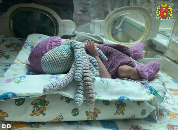 Оказывается, вязаные игрушки осьминоги помогают недоношенным детям восстанавливаться и набирать вес. Врачи утверждают, что форма щупалец схожа с пуповиной. Когда ребёнок держит такую игрушку, он чувствует защищённость, которую испытывал в утробе матери. Выяснилось это, когда несколько лет назад девушка из Дании связала своему преждевременно родившемуся малышу такого осьминога.