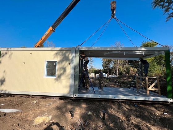 Кроме того, полностью смонтирована недавно прибывшая из Коврова конструкция модуля паталогоанатомического отделения. Здание установили на свайный фундамент, который владимирские строители подготовили заранее.
