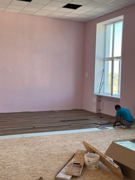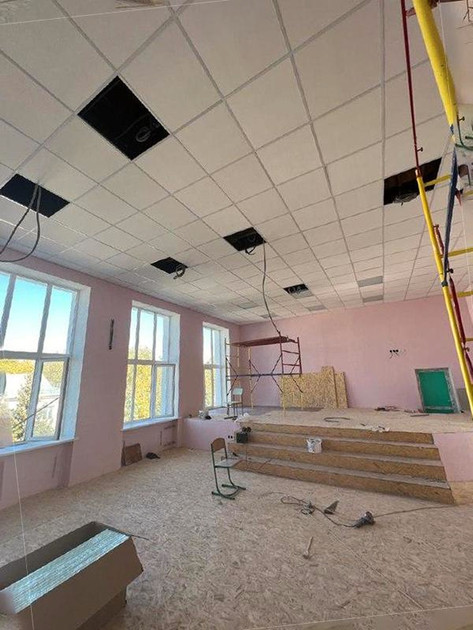 Восстановительные работы идут и в городской школе № 4, где Владимирская область дополнительно пообещала отремонтировать актовый зал и оснастить его новыми креслами. Специалисты из 33 региона уже завершили ремонт стен, потолков и электропроводки, установили новые двери и начали монтаж напольного покрытия.