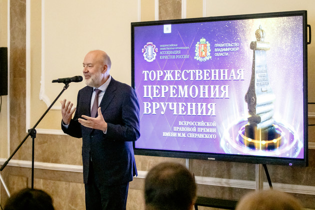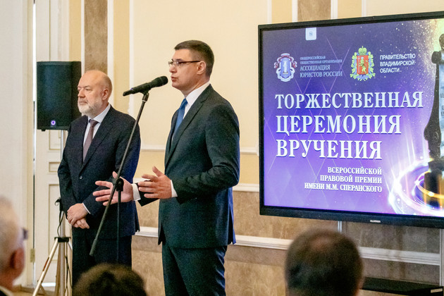 Открывая торжественную церемонию, губернатор Владимирской области Александр Авдеев отметил, что вручение премии Михаила Сперанского это дань уважения государственным деятелям, которые являются двигателями развития юридическо-правовой системы России. Среди них самые достойные люди в сфере управления государством, юридической науки. Это Дмитрий Медведев, Сергей Степашин, Сергей Нарышкин, Татьяна Москалькова и многие другие.