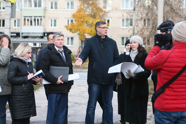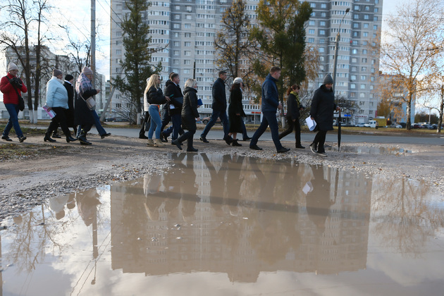 Александр Авдеев, глава Коврова Елена Фомина, председатель горсовета Анатолий Зотов и другие с картами микрорайона в руках прошли от южного въезда в Ковров со стороны поселка Мелехово до строящейся школы на улице Строителей.