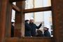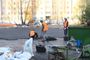 Видно, что работы идут одновременно по нескольким направлениям. В то время как интенсивно возводится входная группа и опоры у будущего парадного входа, рабочие позади здания уже укладывают асфальт на школьной площадке. А внутри школы уже устанавливают радиаторы отопления, приступили к сборке дверей и т.д.