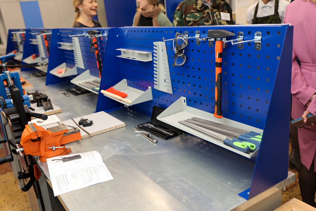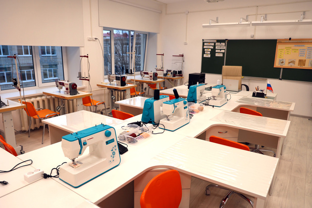 На базе школы ученики могут освоить две профессии «Швея» и «Столяр», также в этом году были созданы две новые мастерские «Рабочий по комплексному обслуживанию и ремонту здания». Кабинет швейного дела оснащен новым оборудованием, в том числе промышленными оверлоками, утюгами и отпаривателями, швейными машинками для изделий из трикотажа, и удобной системой хранения.