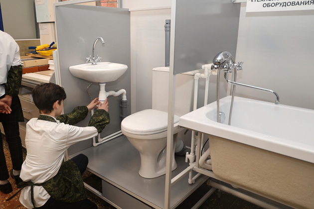 Для социальной адаптации и подготовки к самостоятельной жизни выпускников с инвалидностью оборудован кабинет «Домоводство», где специально созданная образовательная среда способствует овладению академическими знаниями и формированию жизненных компетенций ребят. Так, в одном из классов в распоряжении учителей появился учебно-лабораторный стенд технология монтажа сантехнического оборудования и водопровода.