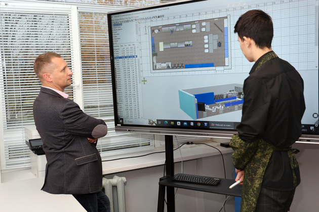 К слову, проекты планировки и зонирования мастерских разработал на уроках информатики ученик 8 класса Юсиф Ахметов. Одну из работ школьника даже отправили на всероссийский конкурс. Владимир Куимов предложил обновить библиотечное пространство в школе, а проект модернизации рекомендовал создать Юсифу, пообещав поддержку в его реализации.