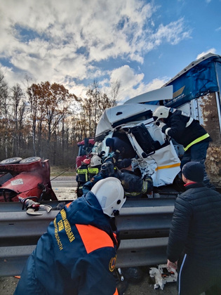 Всего в ликвидации последствий ДТП принимали участие 7 человек, 2 единицы техники. Пострадавшего водителя большегруза деблокировали с помощью гидравлического инструмента.