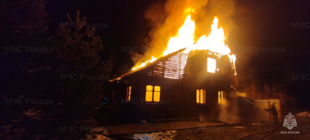Пожарный расчет оперативно выдвинулся в деревню Храпки. Здесь на улице Сиреневой полыхал дом №21. К моменту прибытия огнеборцев всё строение было охвачено огнем. Площадь возгорания составила 150 кв. м. Скорее всего, обнаружено возгорание было поздно…