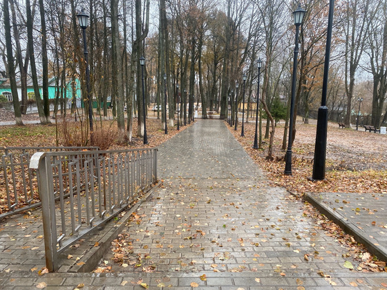 На данный момент в парке рабочие обустраивают сети дорожек из тротуарной плитки, прогулочные площадки, устанавливают беседки в стиле старой эпохи, парковые качели, ярморочные домики, новые парковые скамейки, перголы и уличную библиотеку.