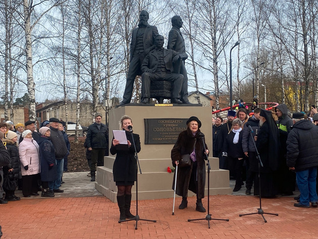 Открыла памятник Наталья Владимировна Кудрявая-Соловьева – доктор педагогических наук, почетный профессор кафедры педагогики и психологии Московского государственного медико-стоматологического университета имени А.И. Евдокимова, внучка купцов Соловьевых:
