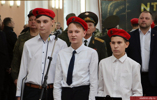 С творческим подарком перед контрактниками выступили юнармейцы владимирской школы № 16. Арт-проект «ИванОльга» исполнил песню «Родины сыны», посвященную воинам-участникам СВО. Иван и Ольга Лескины написали ее после поездки на Донбасс, где дали несколько концертов, в том числе на передовой в День Победы.