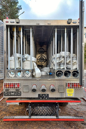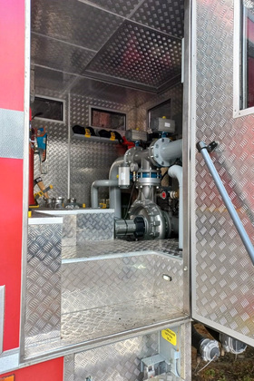 Автомобиль оборудован всем необходимым для тушения пожаров в труднодоступных местах. В том числе, он делает возможным забор воды из открытых источников даже там, где очень обрывистые берега. Рукава могут быть раскатаны до 1,5 км.