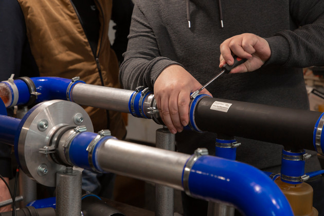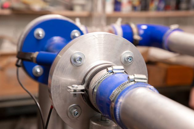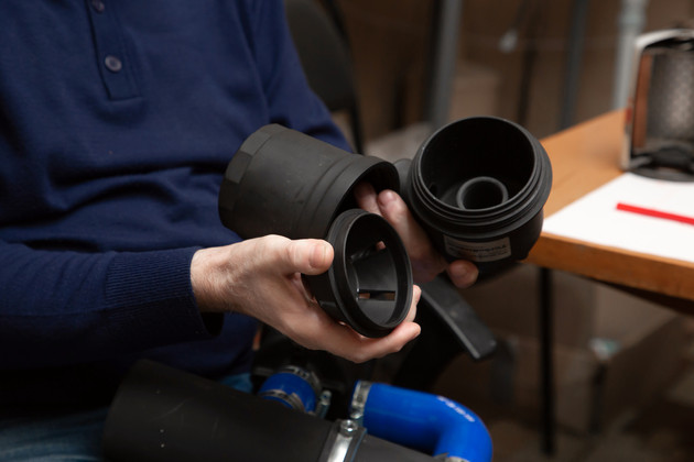 «Это модель системы охлаждения мощного транспортного двигателя, - рассказывает сын и ученик профессора Михаил Драгомиров. (Он не только верный соратник отца, но и директор по развитию НТЦ «АвтоСфера», кандидат технических наук. - Прим. ред.) - Вон там внизу у нас насос, который способен пропустить через патрубки до 600 литров охлаждающей жидкости в минуту. С помощью этой установки мы моделируем, как работают система охлаждения и фильтр. Данный агрегат был собран на средства гранта «Умник», как и многое другое, что есть в лаборатории».