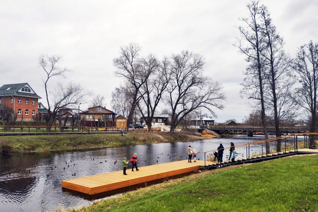 Так, на правом берегу Судогды теперь появились дорожки из брусчатки, освещение, скамейки и качели, летняя сцена с подсветкой. Также организованы игровая детская зона и спуск к воде с пирсом для лодок и байдарок. Берега соединяет мост. На левом берегу появилась тропиночная сеть на сваях, беседка, плавучий плотик для отдыха, а также обновлена смотровая площадка.