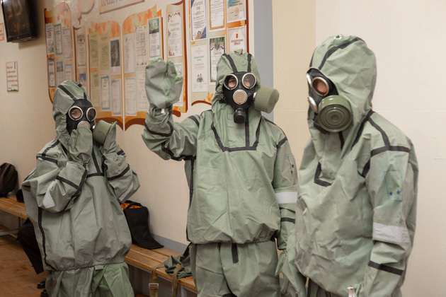 – При сигнале «Химическая тревога» со складов, где находятся СИЗы, их вывозят в пункты выдачи. Далее администрация согласно спискам населения, которое подлежит обеспечению СИЗами, потоком организуют выдачу, – объяснил собеседник.