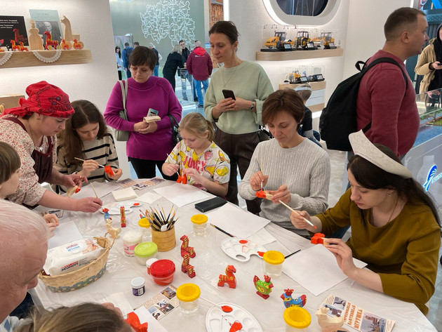Кроме того, по выходным дням в нашем павильоне проходят интерактивные выставки и мастер-классы, организованные районами области. В них уже приняли участие Гороховецкий, Гусь-Хрустальный и Вязниковский районы. На очереди - другие муниципальные образования.