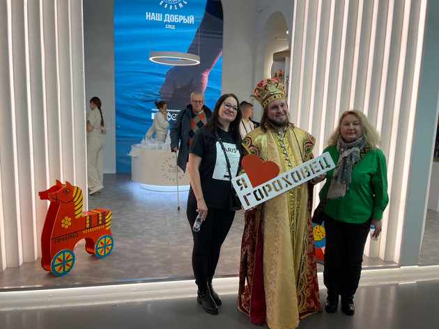 Приветствовал гостей павильона Царь Горох - символ древнего Гороховца. Организаторы выставки предлагали сфотографироваться со сказочным персонажем в специальной фотозоне на фоне гороховецкой игрушки. Только за два дня работы на экспозиции Гороховецкого района зарегистрировались порядка 6 тысяч участников.