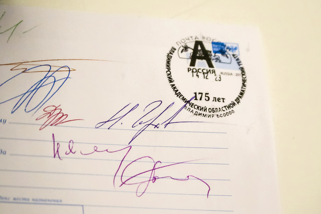«Сегодня конверт приобретает особую значимость, особую форму, он разлетится по всему миру с печатями, сообщающими о 175-летии театра».