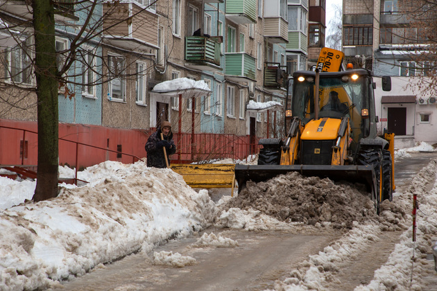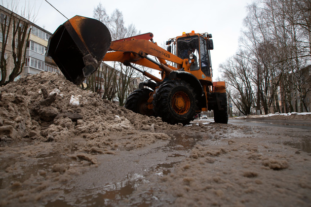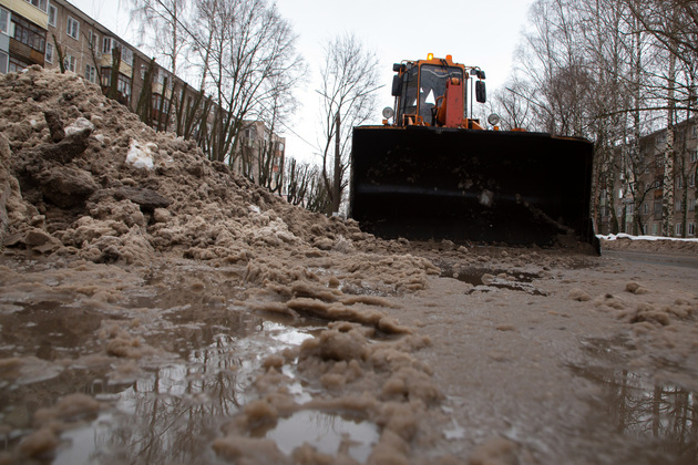 Именно оттепель облегчает задачу очистить улицы зимой до асфальта, но, с другой стороны, мокрый снег тяжелее, и при его уборке, к тому же, особенно во дворах, образуется много талой воды.