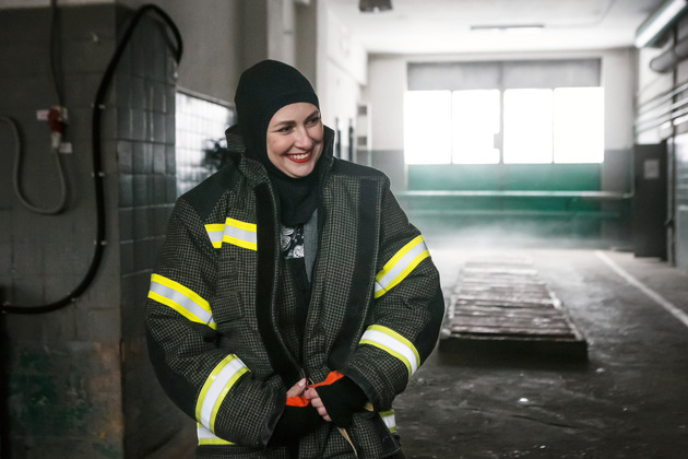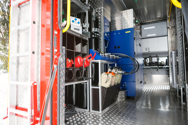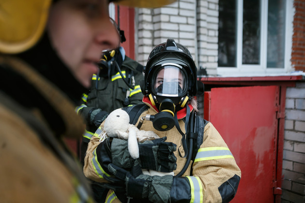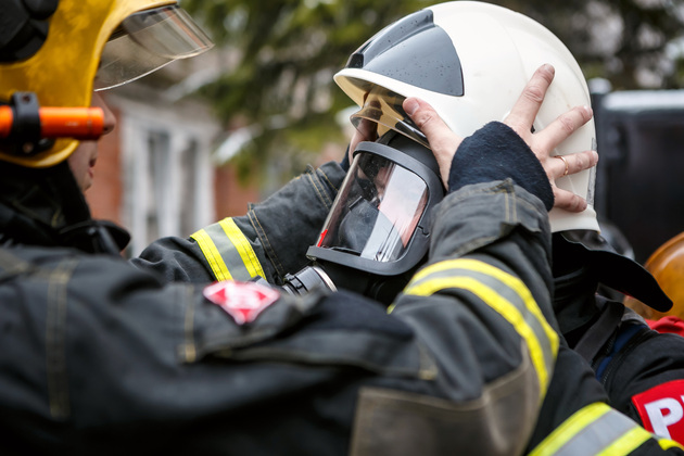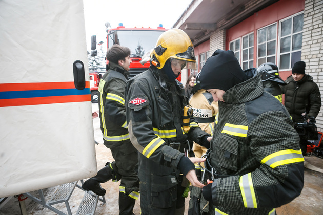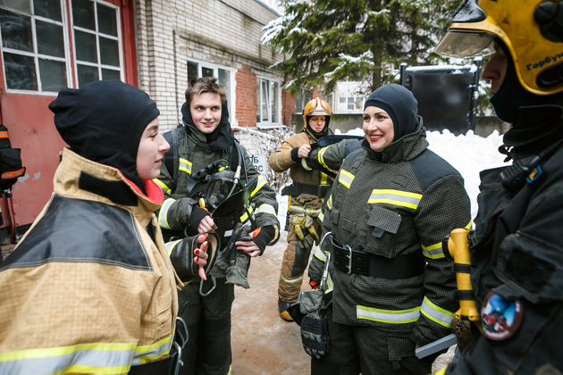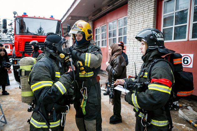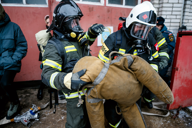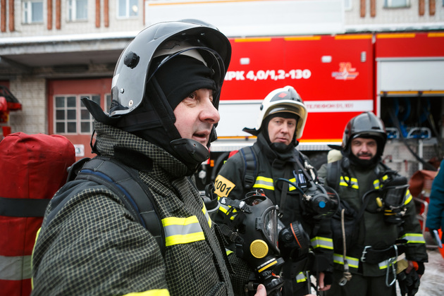 И, главное, – обмундирование пожарного. Интересно, что форму по нормативу нужно надеть за 21 секунду! В нее входят штаны, куртка (ее называют «боевкой»), подшлемник, сапоги, каска и ремень. Без дыхательного аппарата вес комплекта – около 11 кг, вместе с баллоном – примерно 22-25 кг.
