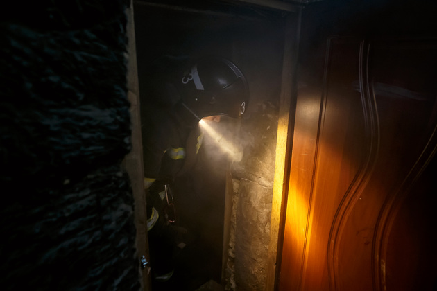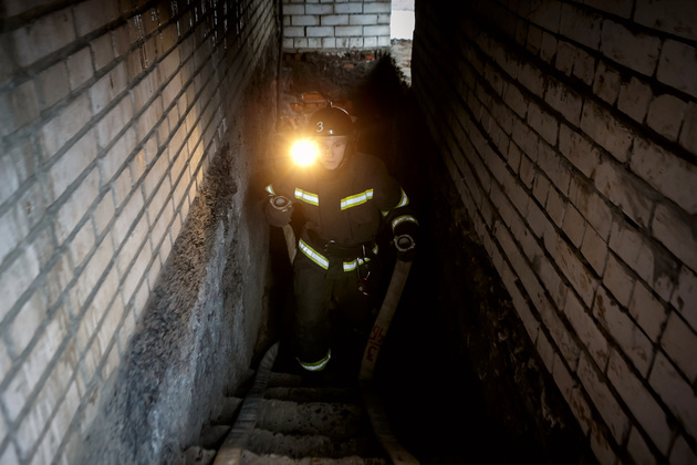 Еще обязательный атрибут – фонарь. Есть групповой, его несет командир звена, и у каждого газозащитника (в группе их может быть от двух до пяти) есть индивидуальные фонари. В большинстве подразделений имеется комплекс «Маяк спасателя», предназначенный для обеспечения поиска и обнаружения личного состава различных спасательных подразделений в зоне чрезвычайных ситуаций, в том числе на пожарах. Автоматически передает сигнал по радиоканалу от спасателя, попавшего в экстремальную ситуацию и утратившего возможность дальнейшего самостоятельного движения. У каждого из спасателей с собой есть «маячок», и если кто-то потерял сознание и не двигается, то аппарат сработает.