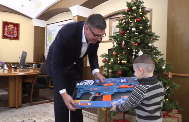 Глава Владимирской области Александр Авдеев исполнил желание маленького Володи из Гороховца. Накануне Нового года губернатор снял шар с главной Ёлки желаний в Кремле и прочитал, что четырехлетний парнишка попросил у Деда Мороза игрушечный бластер.
