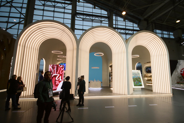- Стенд Владимирской области сделан в стиле белокаменного зодчества. Его арочные своды напоминают о памятниках архитектуры, охраняемых ЮНЕСКО, которые всем известны - Успенском и Дмитриевском соборах, храме Покрова на Нерли и других.