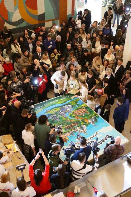 Чудо кондитерского искусства - гигантский пряник размером два на три метра, искусно расписанный, - представили владимирские артисты. Губернатор Александр Авдеев еще на презентации региона говорил, что в конкурсе Russian Traveler Awards-2023 покровский пряник признали лучшим национальным блюдом. И вот - идем на рекорд России в категории «Самый большой продукт».