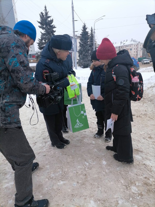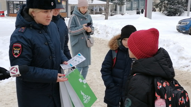 Полицейские раздавали пешеходам памятки, а ребятам еще и значки-фликеры.