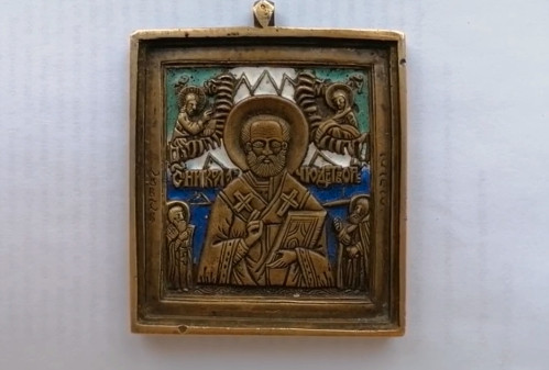 И еще одна реликвия осталась от Василия Быстрова - наперсная иконка Николая Чудотворца, которую он всегда носил в нагрудном кармане гимнастерки.