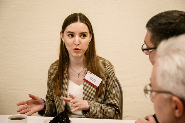 Губернатор попросил молодых собеседников рассказать о себе. Узнал, что Глеб Глебов получил за шесть лет три диплома Владимирского филиала РАНХиГС и уже преподает. Александр Авдеев нашел такую стратегию саморазвития самой правильной для студента.
