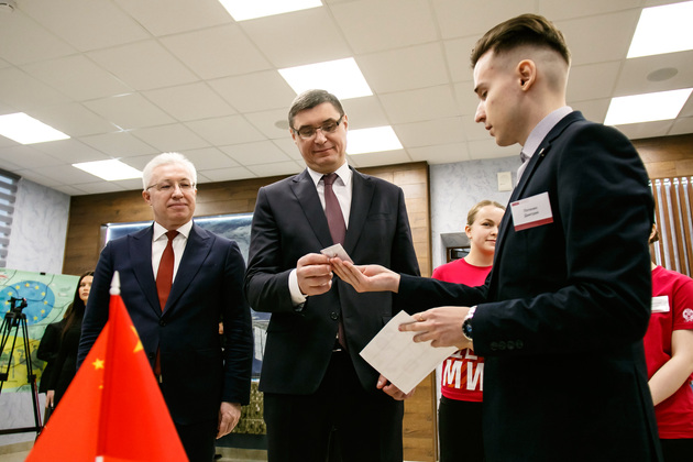 Далее губернатор оказался в центре событий большой деловой игры «Геополитика» - еще одного проекта студентов филиала Президентской академии по мотивам реальных международных отношений. В ней участвуют условные представители России, Китая, недружественных стран. Бросился в глаза рукописный проект резолюции ООН, который составили в ходе игры. В прошлом году Большая деловая игра «Геополитика» с участием команд из пяти вузов прошла на площадке филиала РАНХиГС впервые.