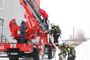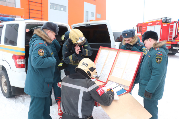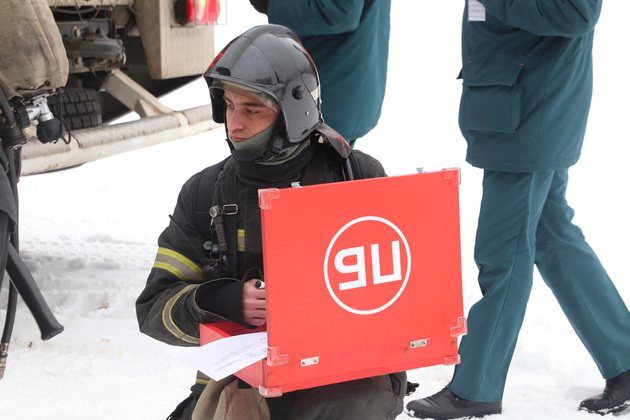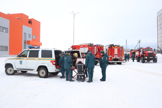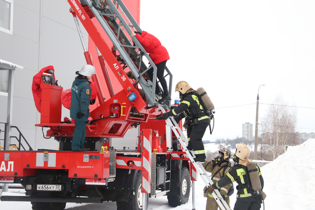 По легенде учений, в момент ЧП один человек не смог выйти самостоятельно. Его спасатели снимали с крыши здания с помощью автолестницы.