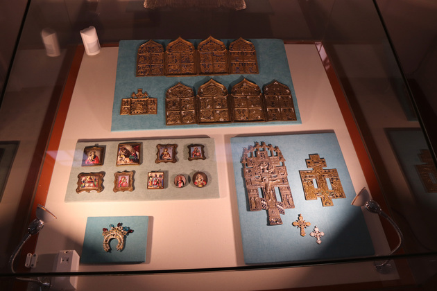 В XVIII веке возникла расписная эмаль. Живописные медальоны с образами святых, евангелистов, Иисуса Христа, Богоматери использовались для украшения церковных предметов, богослужебных книг, нательных иконок. На выставке представлены произведения мастеров Спасо-Яковлевского монастыря из Ростова Великого. В XIX-начале XX века эта обитель считалась одним из главных центров производства расписной эмали как для церкви, так и личного пользования верующих. (Надо отметить, что высокое мастерство умельцев проявилось не только в предметах культа, оно развивалось, причем очень быстро, и стало весьма широко использоваться при изготовлении украшений, аксессуаров, шкатулок и т.д.).